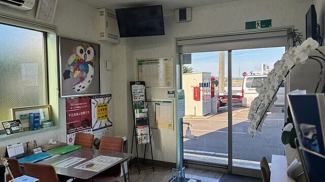 当店では時間を気にせずご相談いただける商談スペースや、車検・修理中もゆっくりとお過ごしいただけるように待合スペースにてお飲み物とお菓子をサービスしております。