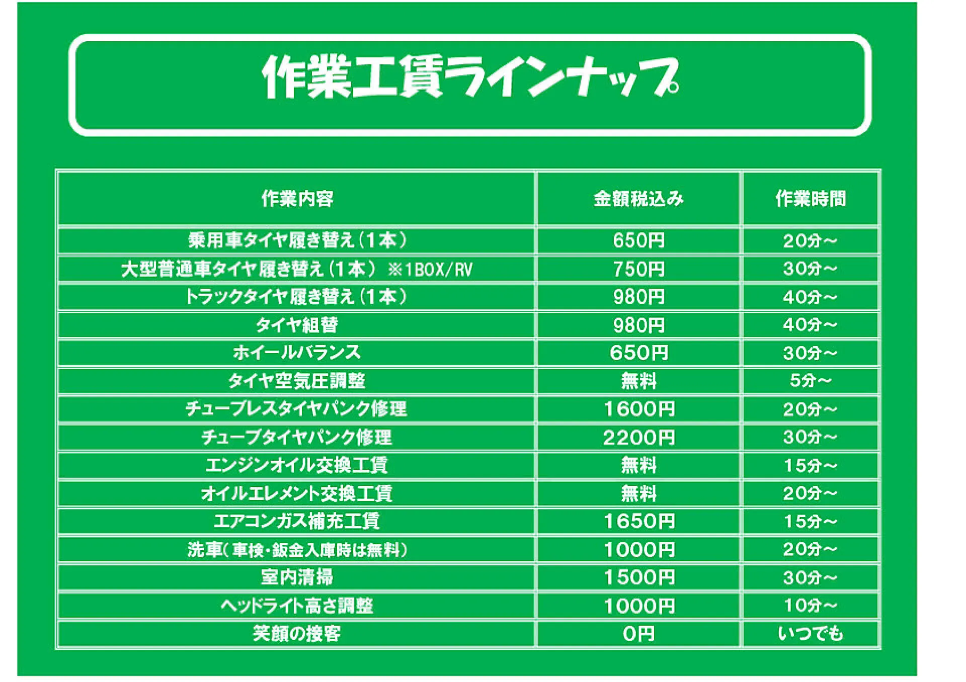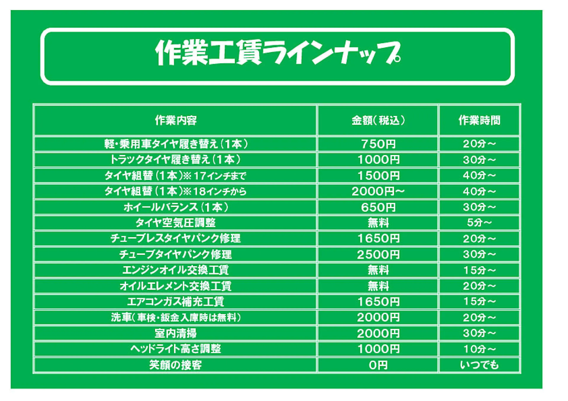 作業料金一覧