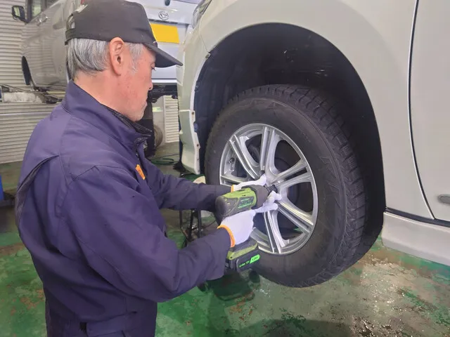 車検と一緒にスタッドレスタイヤまたはノーマルタイヤへの履き替えを無料で行います。ご希望の方はお気軽にお申し付けください。