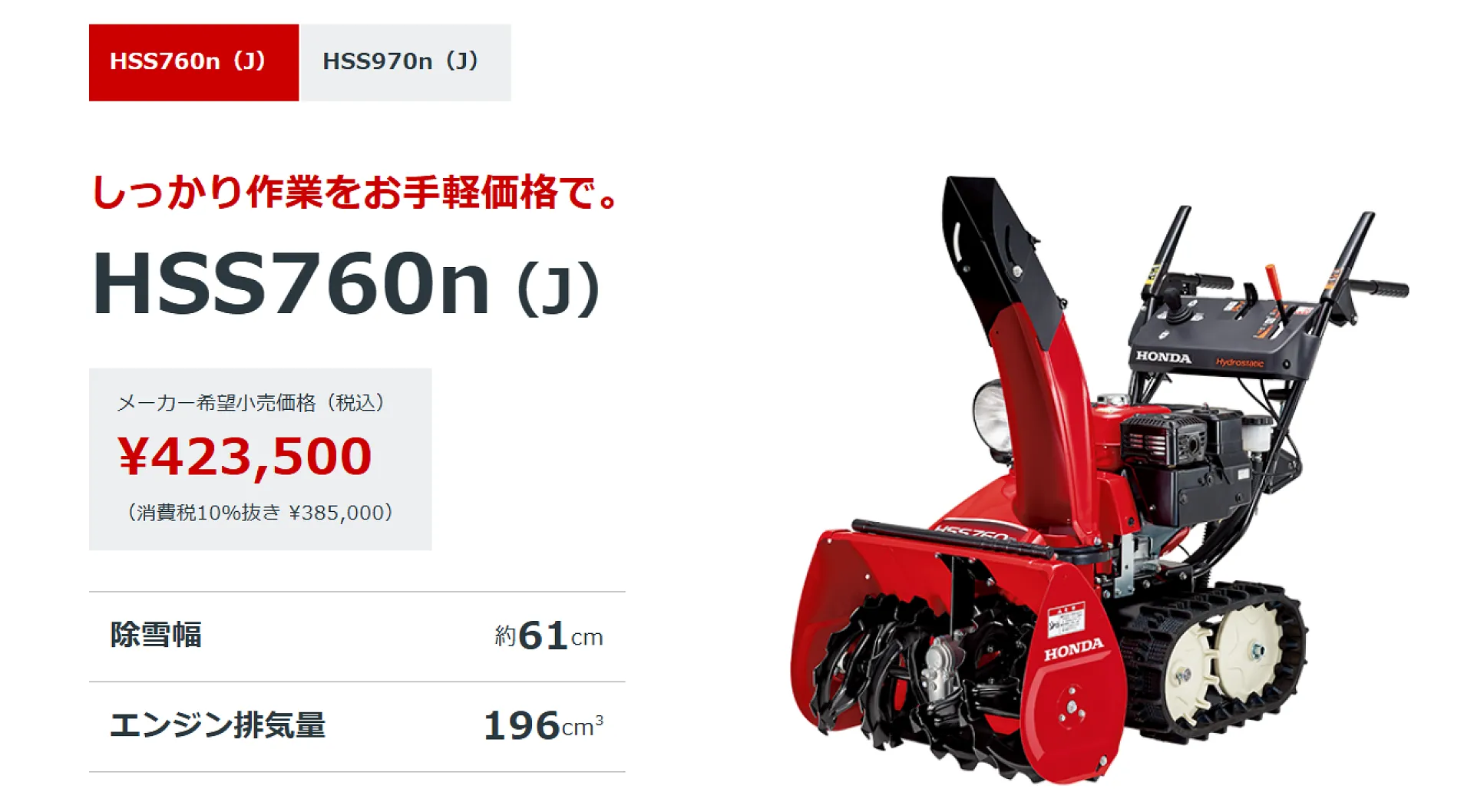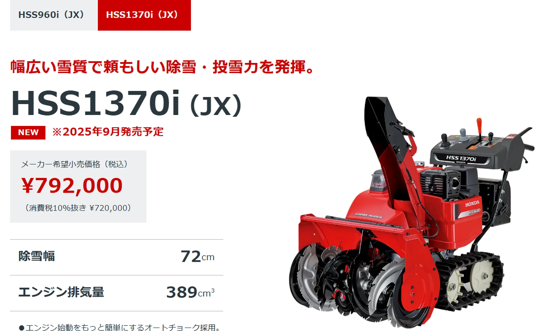 ホンダ新型除雪機をはじめ4機種入荷予定です。